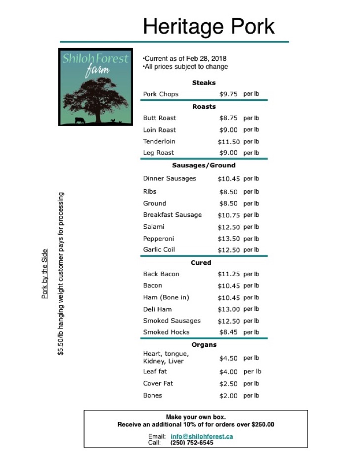 Here is our current pork pricelist by the cut:
